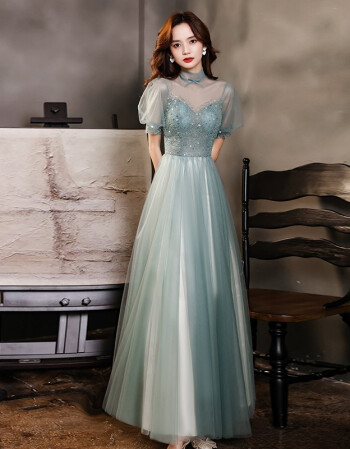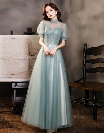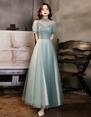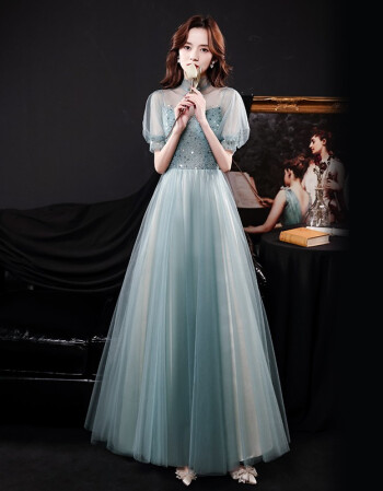 > 宴会晚礼服女2021新款名媛仙气高贵主持人礼服裙