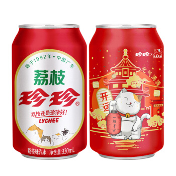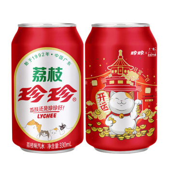 > 珍珍 荔枝味汽水 碳酸饮料 330ml*24听 整箱装