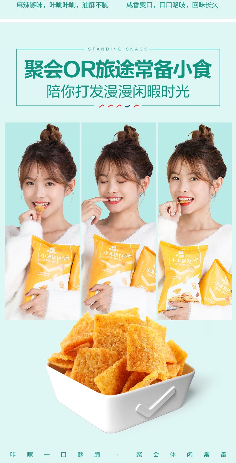 良品铺子 小米锅巴90g 粗粮杂粮饼干零食 麻辣味五香味饼干膨化零食休闲小吃 麻辣味